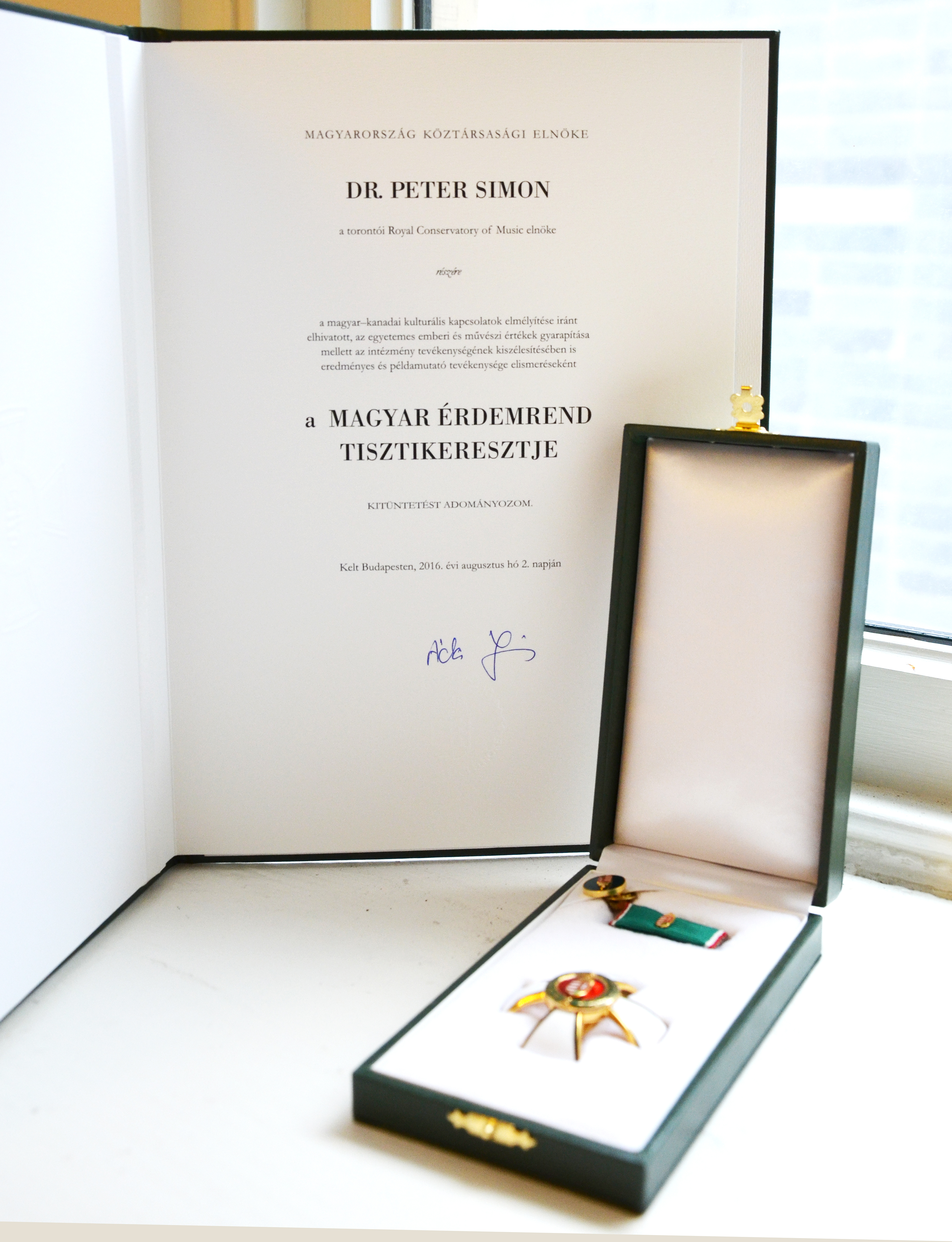 Dr. Peter Simon, President & CEO of The Royal Conservatory of Music, received the prestigious Officer’s Cross of the Order of Merit of Hungary, presented yesterday by the Ambassador of Hungary to Canada, Her Excellency Mária Vass-Salazar.