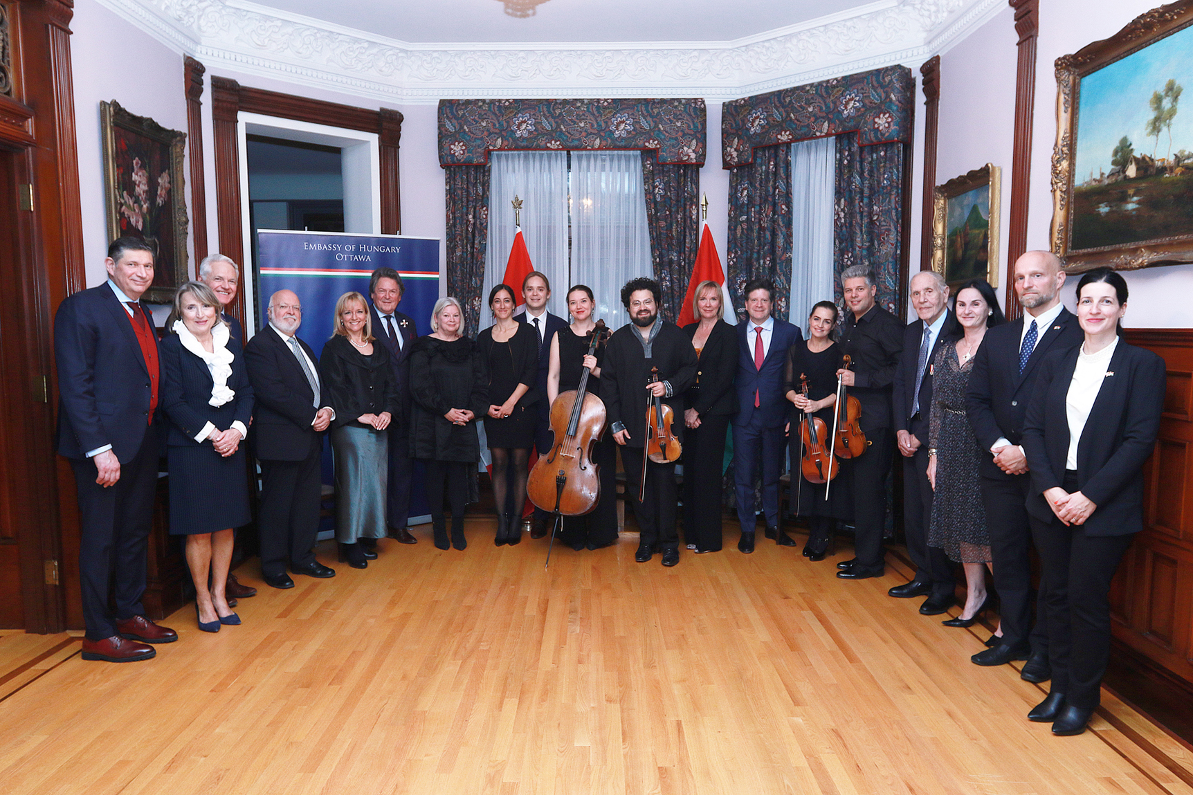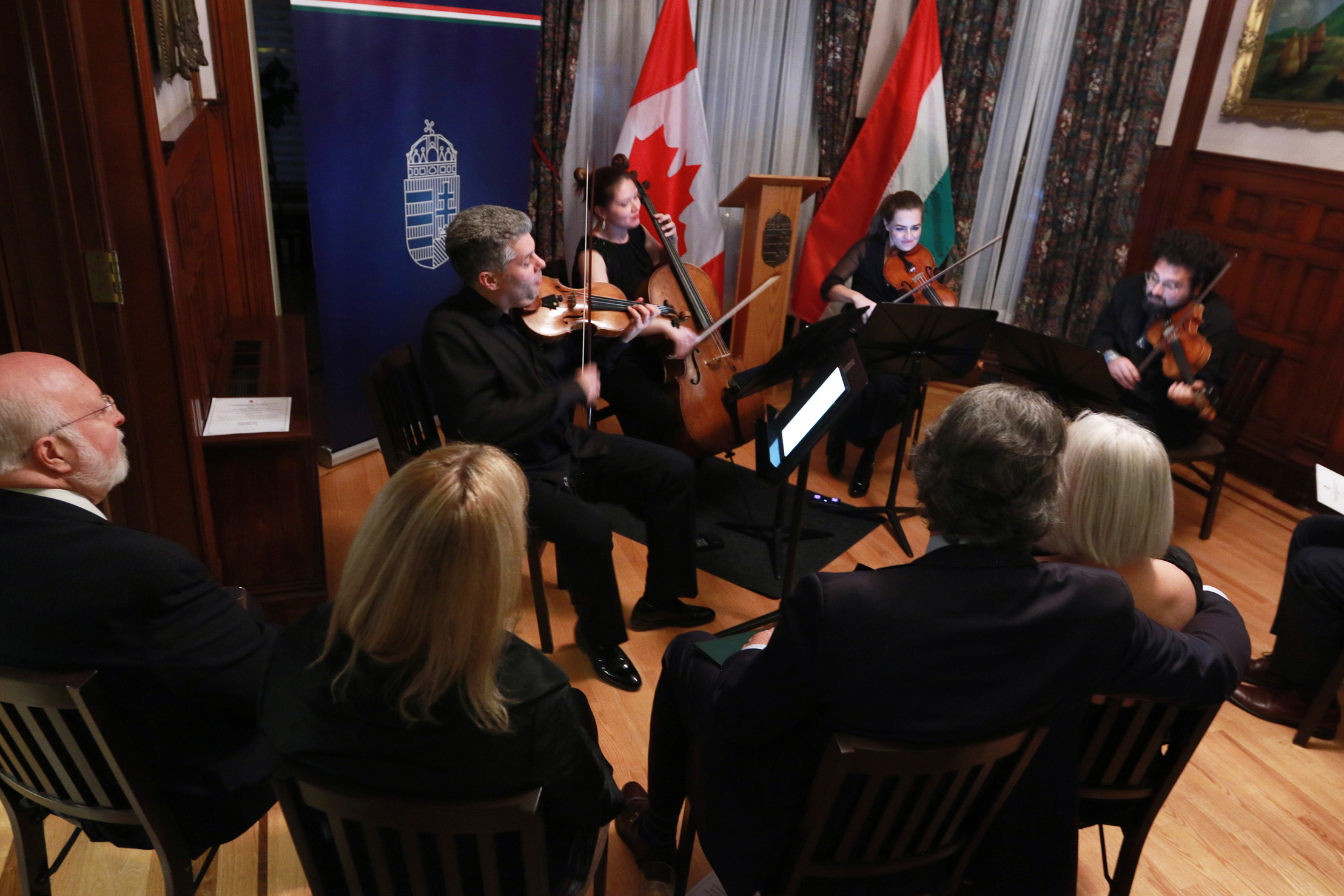 The Embassy of Hungary in Ottawa hosted the event which featured a performance by the internationally acclaimed Kelemen Quartet, comprised of award-winning Hungarian violinists Barnabás Kelemen; his wife, Katalin Kokas, an alumna of The Taylor Academy; violinist Jonian Ilias Kadesha and cellist Vashti Mimosa Hunter.